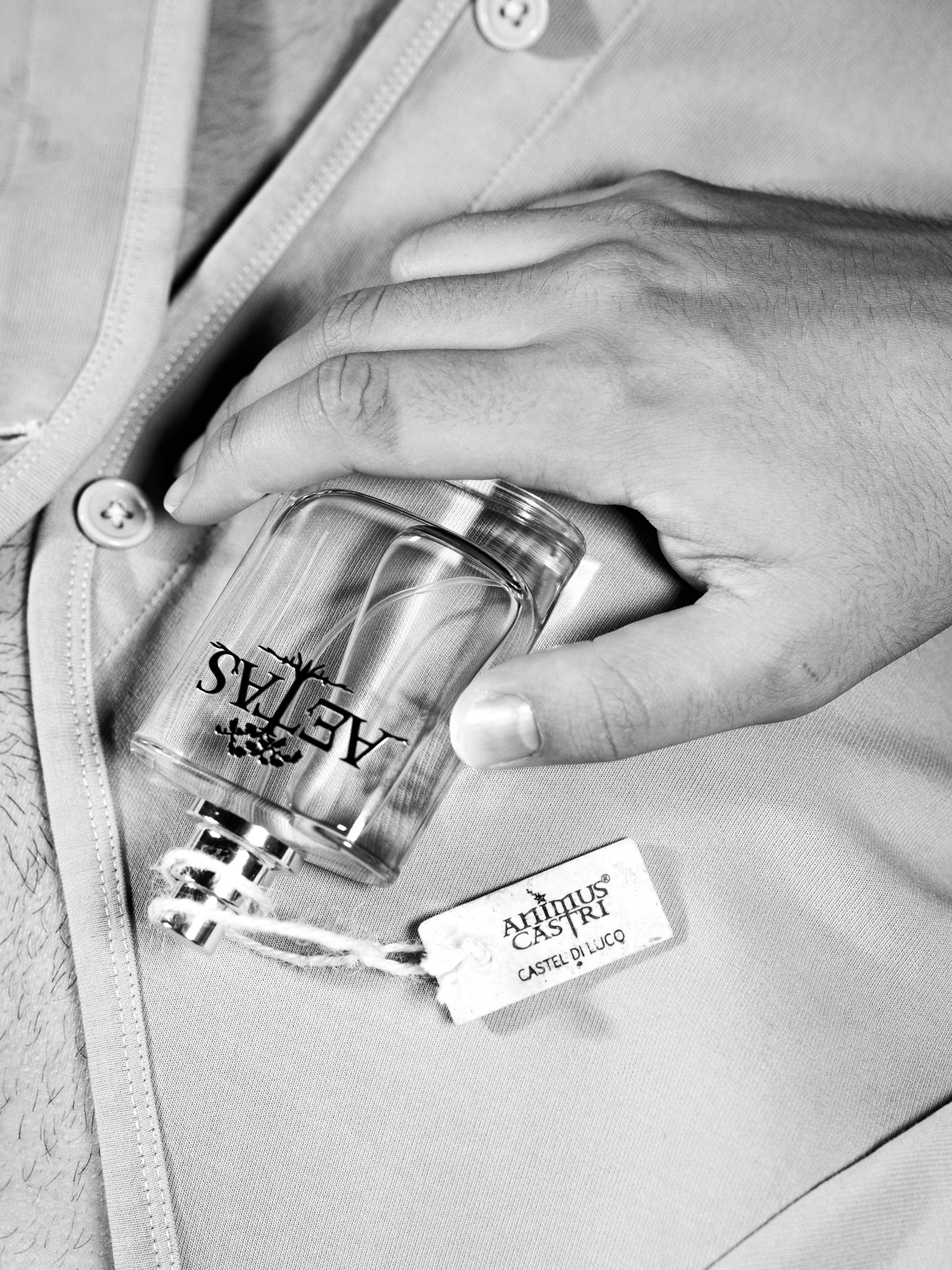 "Aetas è una fragranza che racchiude il vissuto. L’essenza nasce dal travertino, arricchendosi di memorie e sensazioni.